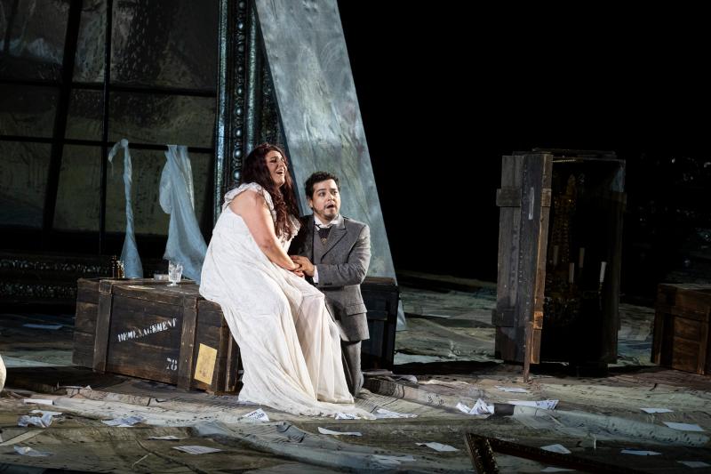 Bijzonder, niet alleen vanwege Gilda Fiuma, maar ook door de regie, die, zoals gelukkig wel vaker in Verona, respect heeft voor het verhaal en de context waarin het speelt. Zo zagen we prachtige 19e-eeuwse kostuums en een fascinerend decor dat hoofdzakelijk bestond uit gigantische schilderijlijsten, de meeste kapot en uiteengevallen, net als de levens van de hoofdpersonen – allemaal erg open, dus nog lastiger zingen voor de solisten dan het daar toch al is.