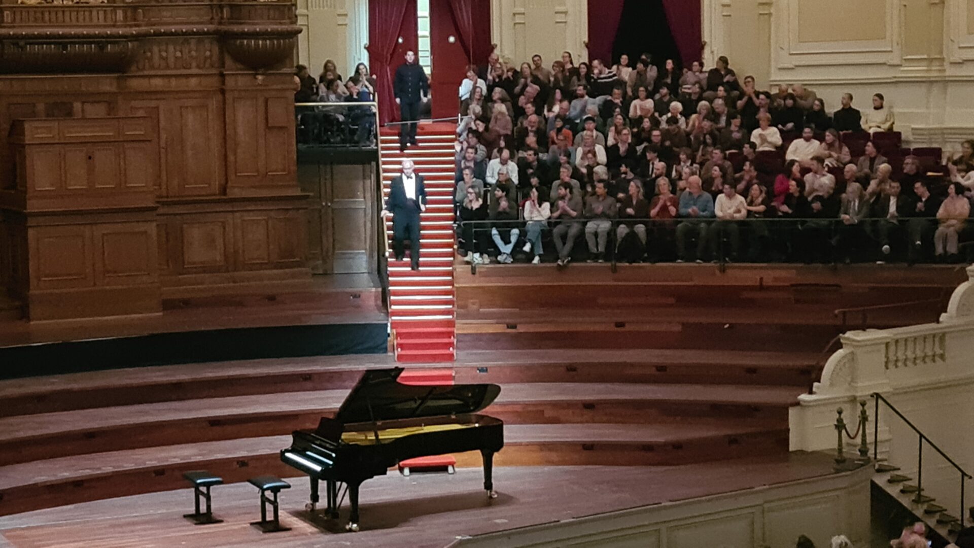 Veel is ook perfect aan zijn spel: de complete gelijkheid van de akkoorden (kom daar nog maar eens om), en de perfecte balans – niet alleen tussen beide handen, maar ook tussen de afzonderlijke stemmen en zelfs alle vingers. De klankschoonheid is bij vlagen subliem en het toucher soms adembenemend. Maar klonken de drie Mozartstukken nu eigenlijk als Mozart? Nee, ze leken meer op een soort Schubert, wat je als eigenzinnig pianist best zo mag interpreteren (liever niet, natuurlijk), maar waar waren de frasering en de speelsheid van Mozart gebleven, en zijn constante verrassingen en dynamische contrasten? Niet gehoord, waardoor het resultaat een beetje langdradig werd. Ook klonken de Fantasieën KV 475 en 397 helemaal niet als ter plekke ontstaand, improviserend gemijmer aan de piano, maar als schoolse studieobjecten die op de snijtafel belandden, waardoor vooral de retorica en de agogiek (niet alle noten zijn even belangrijk) het onderspit delfden.