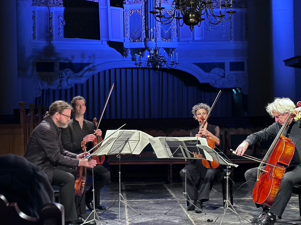 In de Waalse Kerk opende het ad hoc strijkkwartet uit het Orkest van de 18e Eeuw – Alexander Janiczek en Hed Yaron Meyerson (viool), Fanny Paccoud (altviool) en Albert Brüggen (cello) – met het ingenieuze Allegretto uit Mozarts Strijkkwartet nr. 20 in D, KV 499 ‘Hoffmeister’, luchtig gespeeld en levendig aangevoerd door primarius Janiczek (concertmeester in het Orkest van de 18e Eeuw), op de voet gevolgd door de andere drie strijkers, waarbij meteen duidelijk werd dat ze goed met elkaars speelcultuur vertrouwd zijn: authentiek en op darm, maar (gelukkig) niet dogmatisch, doorgaans zuiver en met een goed gedoseerd vibrato.