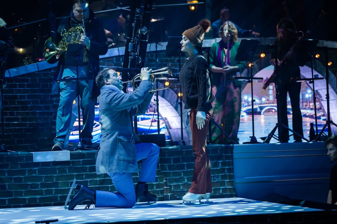 Wel schattig was het liefdesduet van trompettist Bas Duister en kunstschaatser Daisy Vreenegoor op een piepklein schaatsbaantje op het podium, waarbij niemand uit de bocht vloog en de weergoden werden geprikkeld om daadwerkelijk sneeuw te gaan produceren.