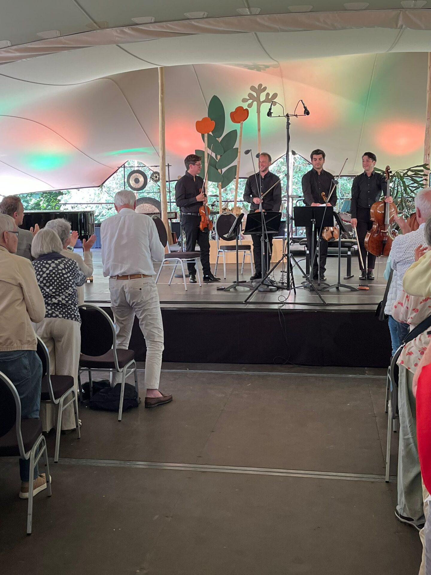 Het programma werd afgewisseld met instrumentale gedeeltes zoals de Blues uit de Vioolsonate van Ravel, gespeeld door Candida Thompson, de gedreven aanvoerster van Amsterdam Sinfonietta. Het zorgde voor een feestelijke afsluiting van een wederom geslaagde editie van het Oranjewoud Festival.