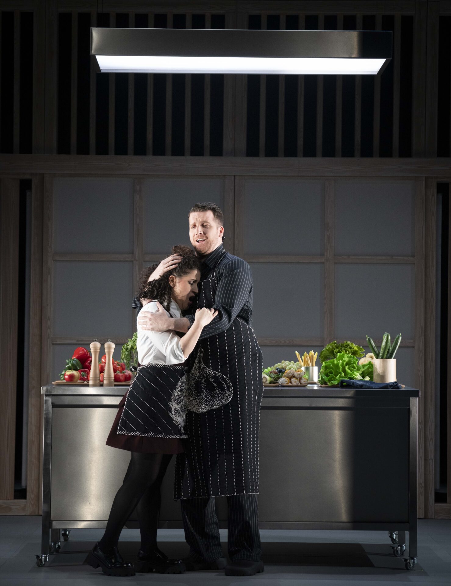 Van Heerikhuizen laat dit door de Nederlandse reisopera voor het eerst scenisch opgevoerde monodrama met een goed getimede verrassing eindigen. Daarna werd de plaats handeling naar de keuken van hetzelfde chique restaurant verplaatst. In het uitermate doeltreffende ontwerp van Koen Steegers veranderde het decor binnen de kortste keren. De Graaff heeft zijn opera Hagar voor 5 zangers geschreven. Het verhaal op de tekst van librettist Eleanor Barlow is herkenbaar actueel.