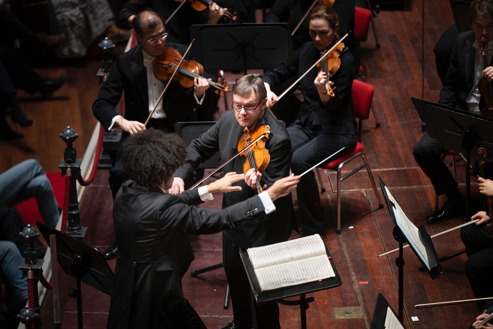 Ook al waren er geruchten dat het tijdens de repetities afgelopen week niet altijd even goed klikte tussen orkest en dirgent, toen Payare zich woensdagavond met zijn hele ziel en zaligheid op de muziek stortte om de niet eenvoudige partituren van Gubaidoelina, Martin en Sjostakovitsj tot leven te brengen, klonk het Concertgebouworkest ineens opmerkelijk geanimeerd en meeslepend. ‘Muziek draait om communicatie. Als we niet communiceren, maken we alleen maar geluid,’ aldus Payare, die gelooft in ‘helderheid van intentie’ en ‘volledige emotionele toewijding.’ Het ontwapende aan deze dirigent is dan ook dat hij niet alleen dirigeert met zijn handen, maar met zijn hele lijf. Hij is allesbehalve een cerebrale ‘analist’ of een door ego gedreven ‘expressionist’, die vanaf de bok het orkest zijn wil en emoties probeert op te leggen. Payare wordt al dirigerend onderdeel van het orkest en vloeit samen met de verschillende instrumentgroepen en solostemen. Hij dirigeert alsof het orkest zijn instrument is, alsof hij alles wat er klinkt zelf speelt en daar doet elke vezel van zijn beweeglijke lichaam aan mee. Daarmee heft Payare als het ware de eerbiedige afstand tussen dirgent en orkestmusici een beetje op, zodat samen musiceren een opzwepende sociale gebeurtenis wordt waarin iedereen, inclusief hijzelf, samenvalt met het klinkende geheel. Zo’n benadering is wellicht even wennen voor het KCO, dat gewend is met maestro’s te werken, die zich niet zelden boven het orkest verheven voelen en proberen de musici hun visie op te leggen, wat niet altijd bevordelijk is voor de spontaniteit. Maar bij de Payare draait alles om communicatie, samenwerken, grenzeloze toewijding, openheid en betrokkenheid. Wat niet wil zeggen dat hij zijn zaakjes niet goed op orde heeft. Het is duidelijk dat Payare de muziek die hij uitvoert door en door kent. Van de orkestmusici verwacht hij hetzelfde, waardoor hij soms wel eens vergeet lastige inzetten exact aan te geven. Hij vliegt vol vuur achter de muziek aan, doorleeft alle noten en sleurt iedereen mee in de flow van de muziek.