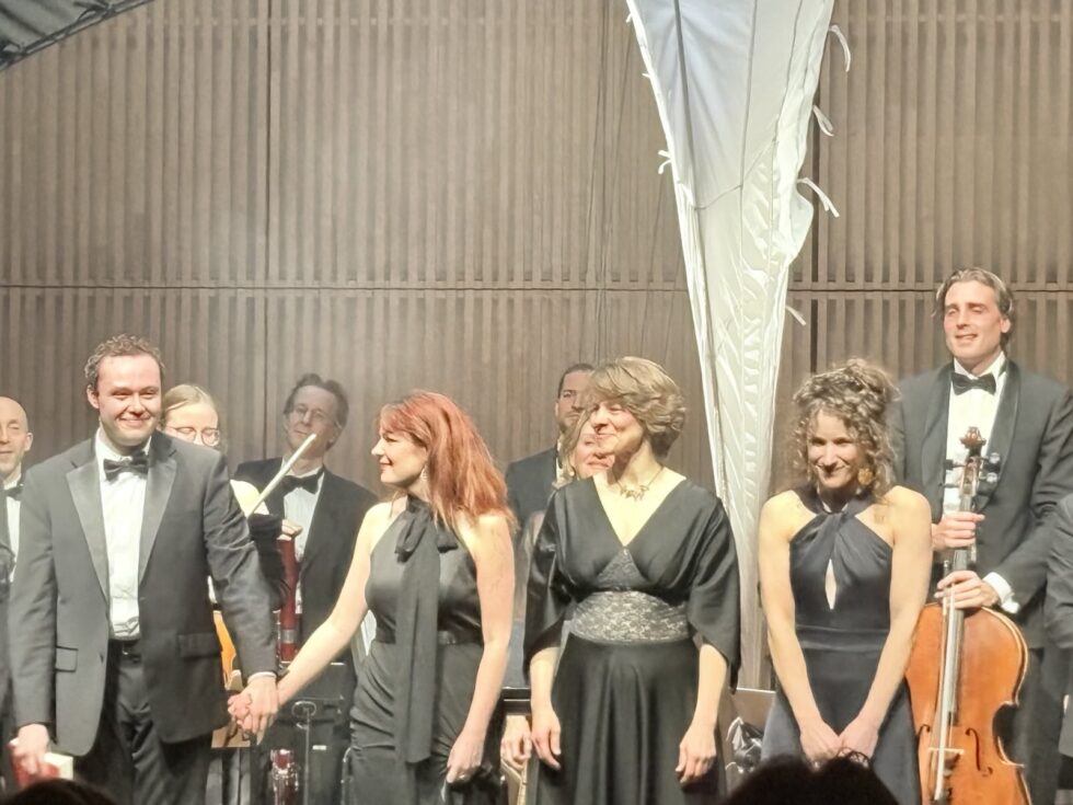 Erg jammer was dat dirigent Benjamin Perry Wenzelberg juist tijdens dit deel zijn dirigeren onderbrak om naar achteren, achter het ensemble te lopen. Daar hingen snoeren waarmee een kinetische installatie van Johannes Offerhaus bediend moest worden. Het was een soort tentkoepel die de musici als een beschermend lichaam omarmde. Door de textielen doeken steeds verder naar beneden te laten zakken, veranderde de (vogel)vorm en dit gaf steeds stof voor nieuwe associaties. Op zich was dit een mooie aanvulling op de muziek. Maar de loopactie van Wenzelberg verstoorde onnodig de aandacht voor de intiem indringende muziek.