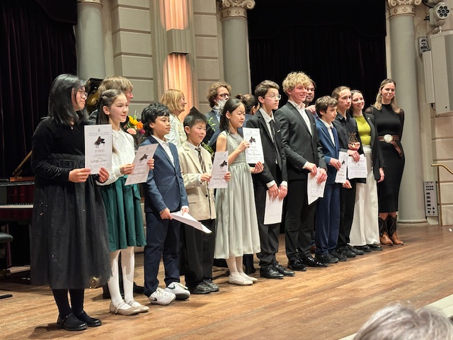 Inmiddels had Filatov zich ook technisch al dusdanig verbeterd, dat muziek en techniek bijna naadloos samenvielen in zijn ingetogen maar prachtig afgewogen, gedifferentieerde en genuanceerde uitvoering van de Derde ballade van Chopin en L’Isle joyeuse van Debussy. Minder jongehonderig en extrovert dan David Kooy, maar daardoor ook weer wat meer evewichtig en elegant, besloot de jury – bestaande uit Gile Bae, Hannes Minnaar, Marlies van Gent onder voorzitterschap van Frank van de Laar – hem te belonen met de 1e prijs (€200), waarna Raffela Duffner van Steinway & Sons Hamburg alle kandidaten prees om hun inzet en hoge niveau, Piano’s Maene een pluim gaf vanwege de uitstekende samenwerking en Demian Filatov uitnodigde om een concert te komen geven in het Steinway Festival van 2027.