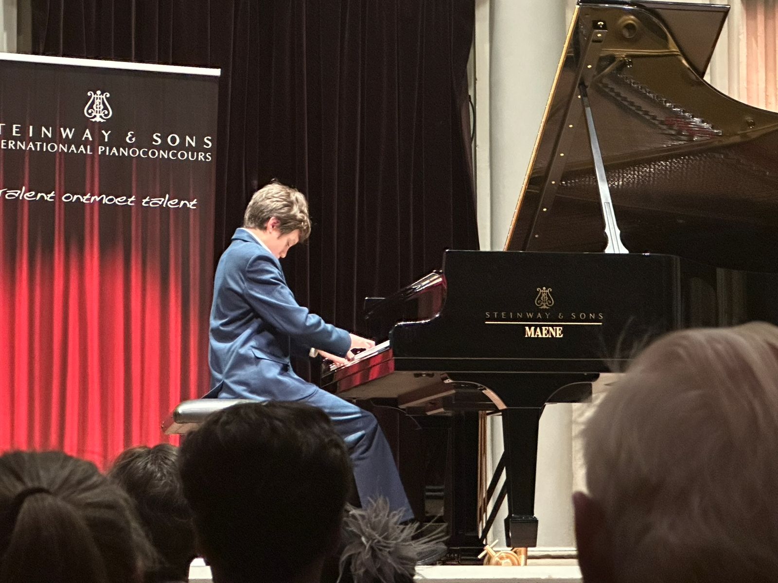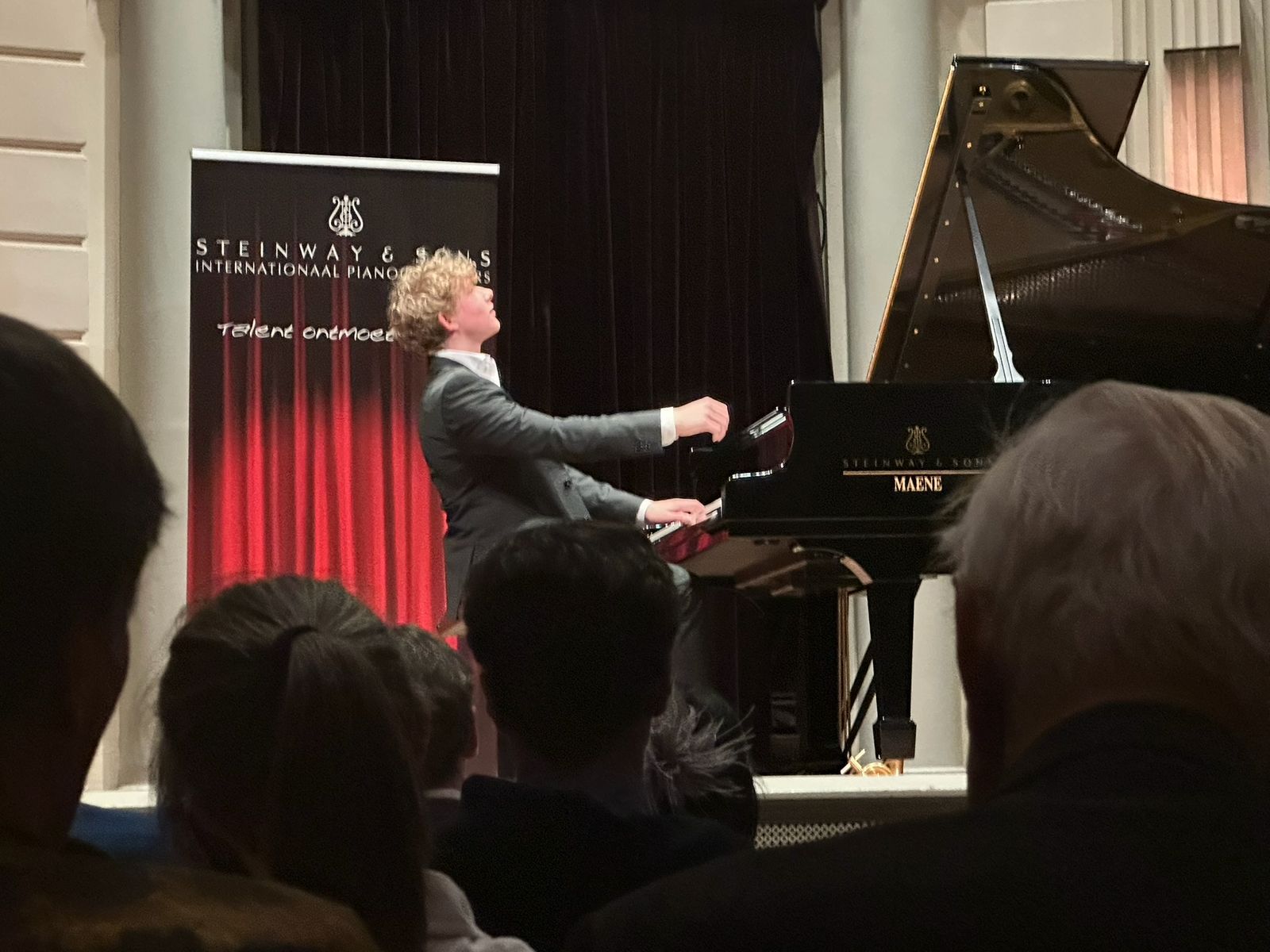 Presentator Ab Nieuwdorp van AVROTROS memoriseerde het bijzondere feit dat er ondanks de digitalisering en alle oorlogen in de wereld, ook nog zekerheden bestaan. Waaronder cultuur, muziek en de prachtige ambachtelijk vervaardigde instrumenten van Steinway & Sons, die in Nederland en België worden geleverd door Steinway-dealer Piano’s Maene uit Ruiselede, het grootste pianobedrijf van Europa, een familiebedrijf dat in 1938 werd opgericht. In Nederland zijn er vestigingen in Alkmaar, Amsterdam en Utrecht. Piano’s Maene is actief betrokken bij het Steinway Piano Concours en omdat de Steinway 88 toetsen heeft en Piano’s Maene, die de winnaars van alle drie de categorieën een concert in de concertzaal van Piano’s Maene heeft aangebode, precies 88 jaar bestaat, kon het volgens Nieuwdorp niet anders dan een hele bijzondere middag worden. En dat werd het ook, want er werd niet alleen door alle kandidaten professioneel gestreden om het van de anderen te winnen, maar voorral ook echt muziek gemaakt, al vlogen de zenuwen af en toe door de zaal.