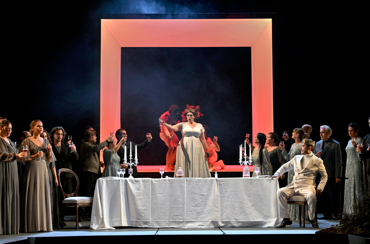 De Macbeth die de Italiaanse dirigent Francesco Lanzillotta presenteerde was de eerste versie uit 1847, die ongeveer een derde deel verschilt van de versie uit 1865 die meestal wordt opgevoerd. De oorspronkelijke versie is ‘rauwer’ en staat misschien dichter bij Shakespeare, en het was mooi die eens in zijn geheel te horen, zeker op zo’n unieke plek, hoewel je de latere versie van bv. het vluchtelingenkoor wel enorm mist. Het Orchestra Giovanile Italiana (Italiaans Jeugdorkest) is niet zomaar een orkest, maar wil een ambitieuze springplank zijn voor jonge musici naar een internationale carrière, geworteld in passie en traditie. Het werkte langdurig samen met Riccardo Muti, maar er was ook samenwerking met maestro’s als Carlo Maria Giulini en Daniele Gatti, die gratis lesgaven en het orkest meenamen op tournees. Hoewel het orkest wat was verkleind (35 man!) vanwege de beperkte afmetingen van de orkestbak, klonk het robuust en, afgezien van een enkel piepklein schoonheidsfoutje, solide en flexibel, en altijd in een perfecte balans met de zangers.