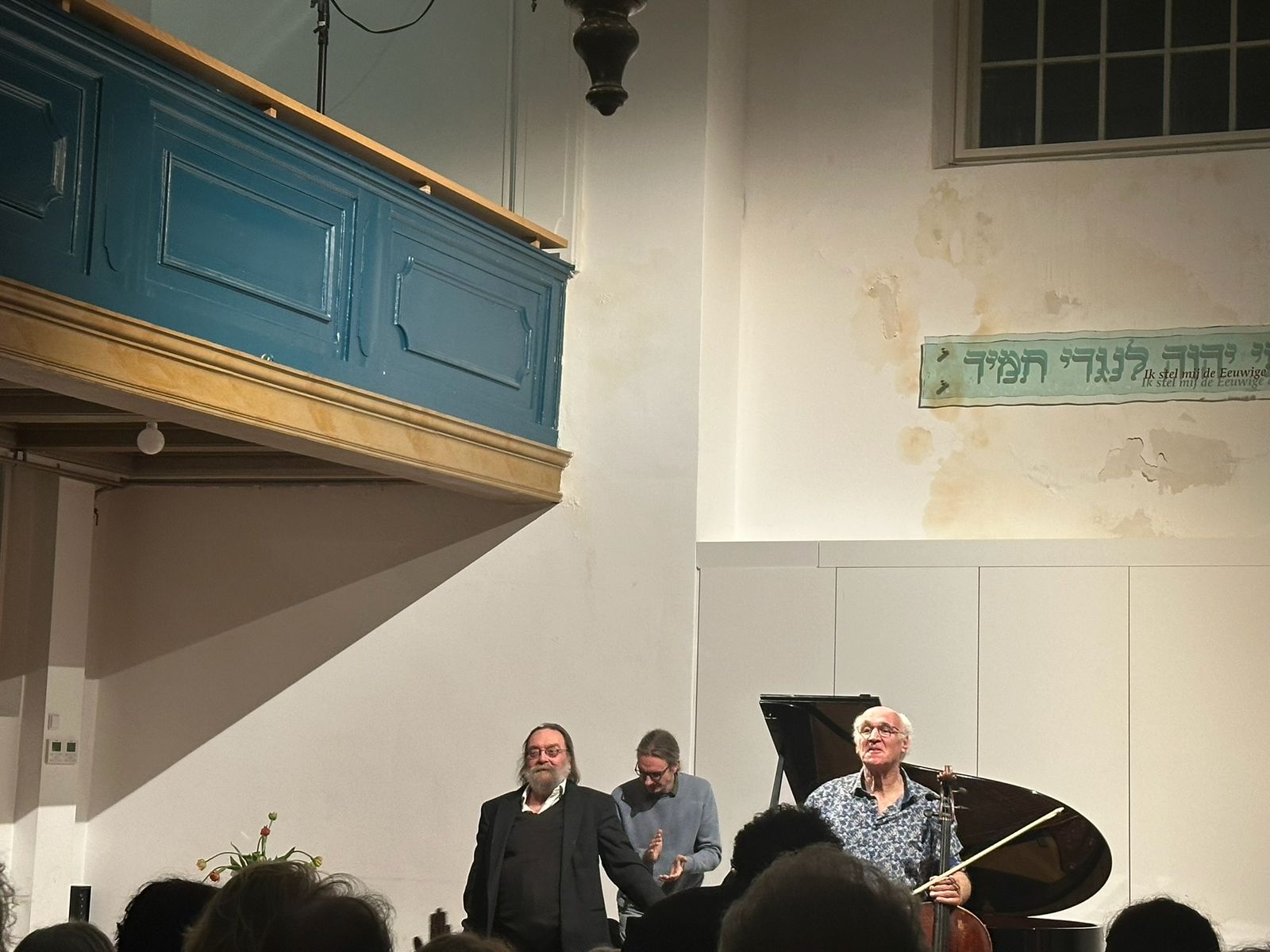 Na de pauze zong de altijd weer verbluffend muzikale, theatrale en ontwapenende mezzosopraan Ekatarina Leventhal Tres canciones bajao a luna op gedichten van Frederico Garcia Lorca (2024) van Huigens, die haar op de piano begeleide. Het duo liet in geanimeerde dialogen de teksten van Lorca en de bijzondere klanktaal van Huigens tot het hart en de verbeelding spreken in een regenboog aan emotionele schakeringen. Er volgde een speelse uitvoering van Huigens Tweestemmige Inventie (2023) door Huigens solo, gevolgd door Tiny Sonatina (2025), een humoristisch kort pianostuk van de ook zelf aanwezige componist Allan Segall, waarbij opviel hoe Huigens alle noten en frases als het ware met humor, kracht en empathie weet om te dopen tot ‘personages’ in een levendig verhaal. Toen was het tijd voor de schitterende Choral prelude voor orgel – Herzlich tut mir verlangen (1897) van Brahms, in een bewerking van Ferruccio Busoni. Huigens bleef uit de buurt van romantische zwaarte, maar gaf de zangerige noten op elegante wijze wel heel veel zeggingskracht mee, waarna hij solo vervolgde met zijn eigen verassend romantisch klinkende Choral prelude – ‘Wie achter is moet vóórgaan’ (2025), geinspireerd op het lied ‘Witte zwanen, zwarte zwanen.’ Tonaal en een beetje romantisch? Huigens: ‘Ieder idee voor een compositie vraagt om een andere aanpak, en om het idee recht te doen meende ik terug te moeten grijpen op een bestaande stijl.’