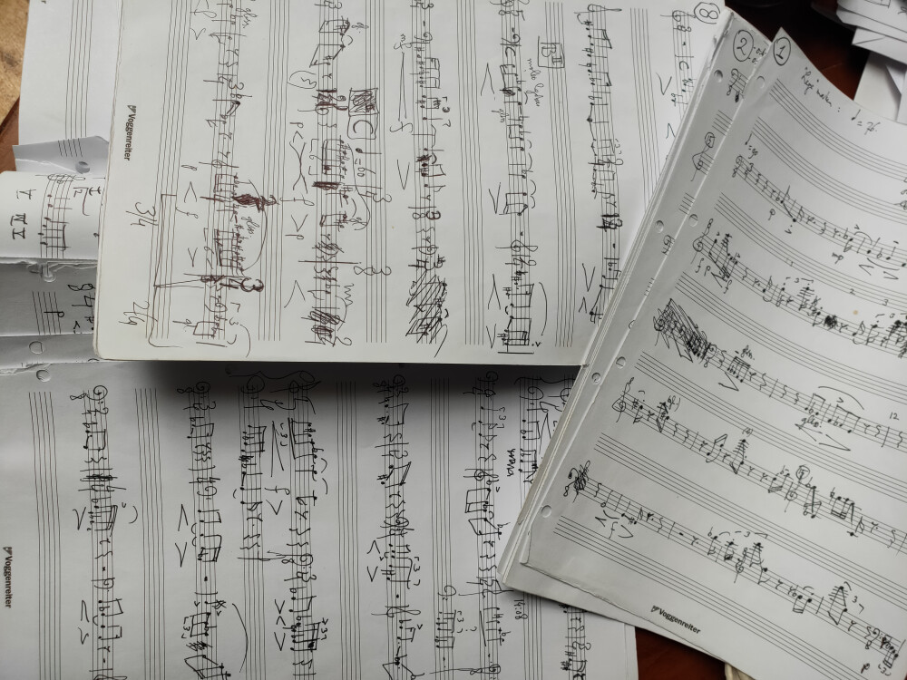En nu, twee jaar later, vierde Huigens zijn 50e verjaardag in de Uilenburgersjoel met al even originele muziek, maar ditmaal zonder de walvissen. Opnieuw had hij zich weten te omringen met interessante musici om zijn muzikale gedachten te kunnen uiten over de stadia van het leven, de metamorfoses waarmee alle organismen van de schepping te maken hebben, zoals een vlinder ontstaat uit een ei, een larve, een rups, pop en vlinder.  De fantasierijke en avontuurlijke Huigens, die bij mij altijd associaties wekt met Little Nemo in Slumberland, begon zijn concert met Twee dromende hoornraven (2024), een eigen compositie voor sopraanblokfuit en basblokfluit, vanaf de balkons gespeeld door Sophie Huigens en Marjolein van Roon, die je in de zaal niet zag maar wel hoorde. De wonderlijke toon was gezet, waarna Van Roon solo in Huigens op gibbon-geluiden geinspireerde Greeting- Ter nagedachtenis aan Jane Goodall (1925) op een Moldavische kaval een mysterieuze en tot de verbeelding sprekende ‘oerwoud-ode’ bracht aan de Koningin van de Chimpansees. Daarna maakte de pianist Huigens indruk met zijn krachtige, enerverende en persoonlijk gekleurde solo vertolking van Bartóks Suite op. 14 (1916). Huigens: ‘Deze suite betekent letterlijk opeenvolging en heeft voor mij oorzaak en gevolg als thema. De eerste drie deeltjes beschrijven telkens een grotere, wildere scène. Die mondt uit in het laatste deeltje, dat me aan een jammerklacht op een verlaten slagveld doet denken.’